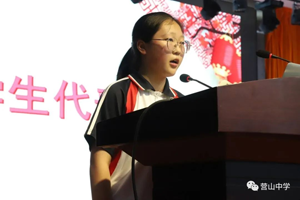 学生代表初三二班曹雨洁回顾了自己在营山中学的成长,感恩自己与优秀者同行,也表示全体同学必定以学长学姐为榜样,筑梦而行,继续书写营中的辉煌。